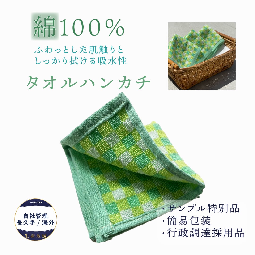 肌触りが良く吸水性抜群の綿100%タオルハンカチ。